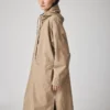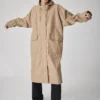 Der Nebel von Tantä Rainwear erfindet den Trenchcoat mit einer weiten, capeartigen Silhouette neu. Er ist aus wasserdichtem Baumwollmischgewebe gefertigt, hat alle Nähte verschweißt und verfügt über Plastron-Pattentaschen, breite Bündchen und eine voluminöse Passform. Übergroßer Cape-Schnitt.