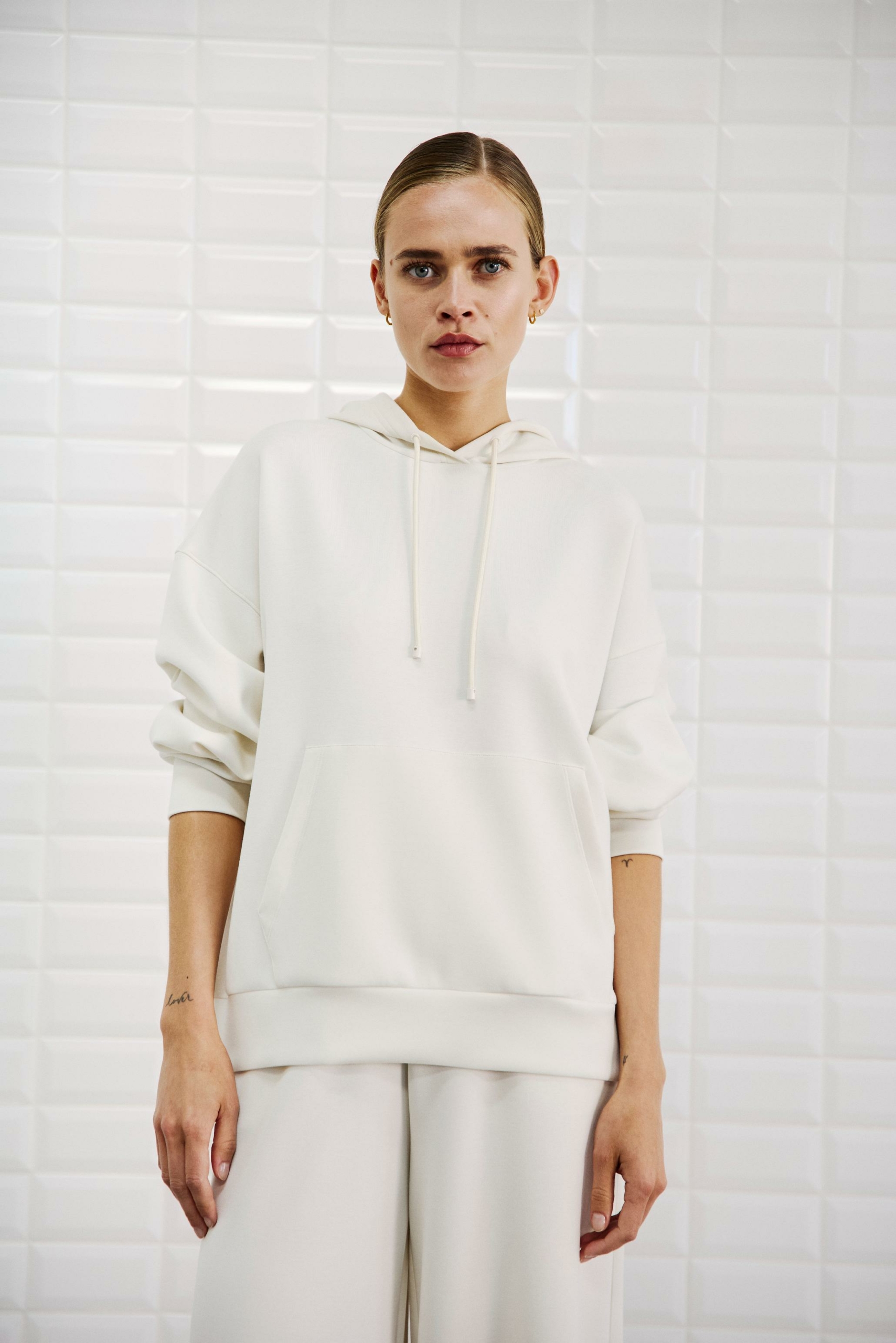 Unser Sweat Hoodie Luni von WithBlack hat eine Kapuze mit Kordeln, lange Ärmel mit Bündchen, überschnittene Schultern, Kängurutasche vorne und eine lockere Passform. Das Sweatshirt hat eine ultraweiche Qualität.