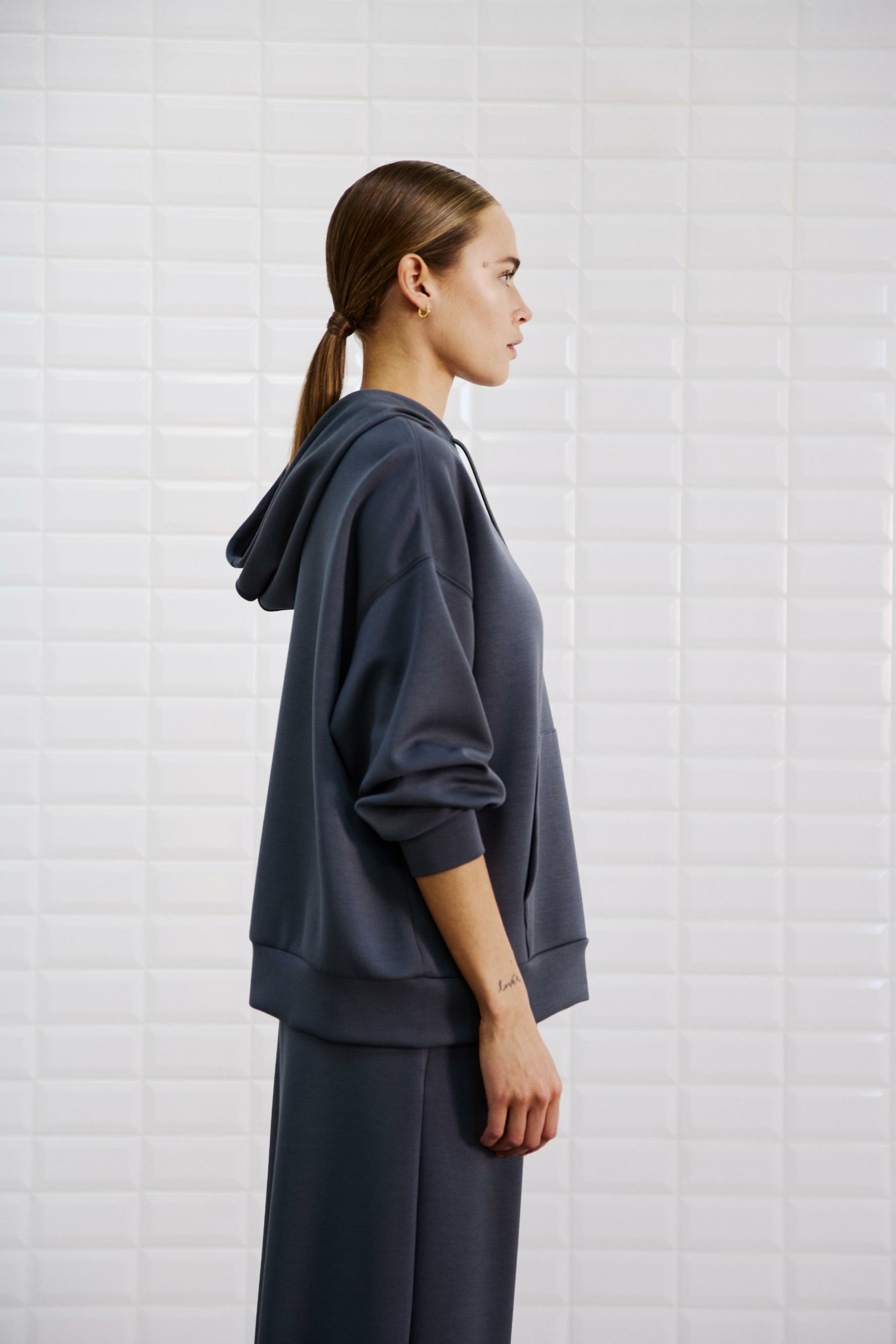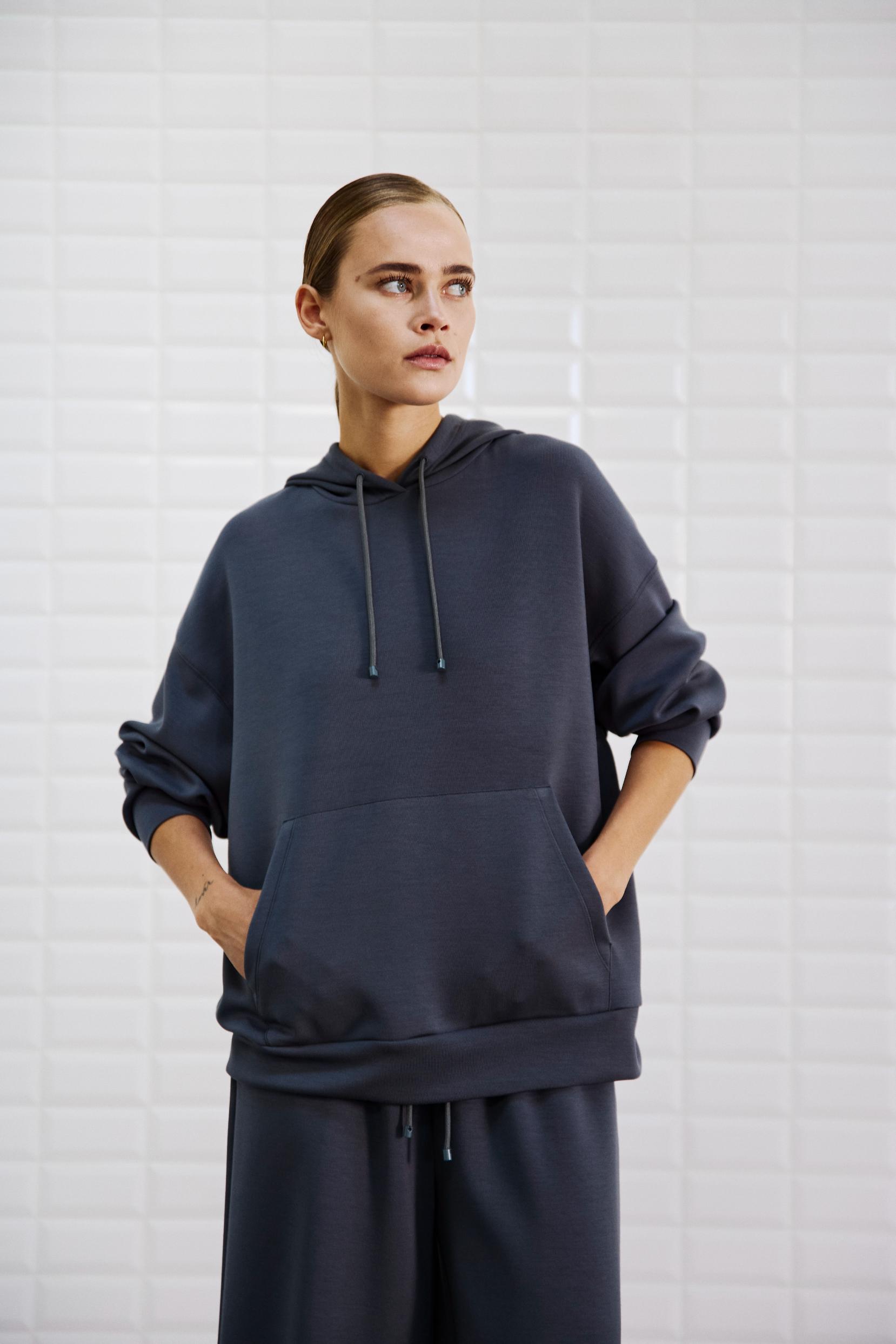 Unser Sweat Hoodie Luni von WithBlack hat eine Kapuze mit Kordeln, lange Ärmel mit Bündchen, überschnittene Schultern, Kängurutasche vorne und eine lockere Passform. Das Sweatshirt hat eine ultraweiche Qualität.
